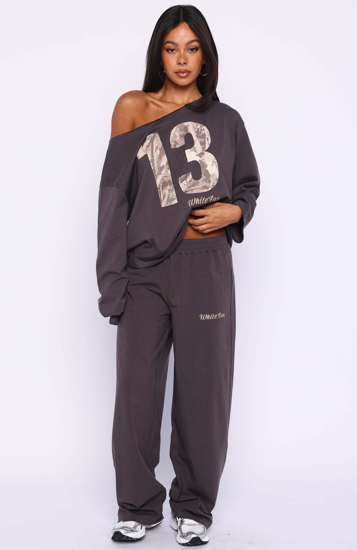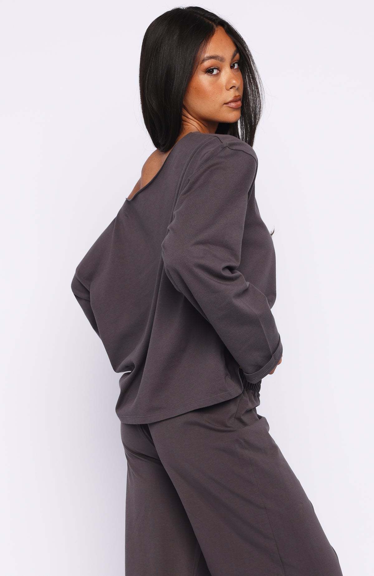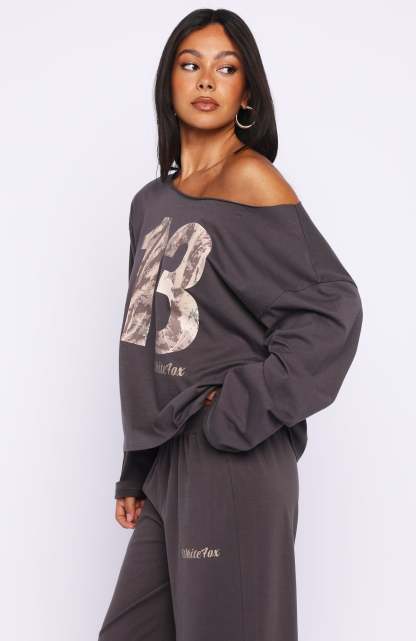 Get cosy and stylish in the All A Dream Off Shoulder Oversized Long Sleeve Tee in Charcoal. Featuring an off‑the‑shoulder neckline, long sleeves, oversized silhouette and a raw neck edge for relaxed, effortless comfort. Style it with the matching All A Dream Track Pants for a coordinated lounge‑ready look that feels cool and laid‑back.