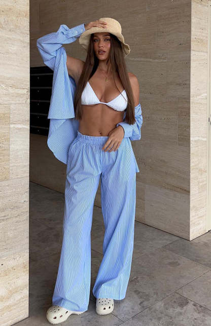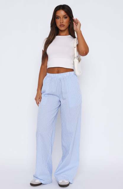 Elevate your everyday look in the Always About Us Pants Light Blue! Featuring a high, elasticated waistband and lightweight, striped cotton fabric. We love this paired with a cute crop and sneakers for a cool girl fit!