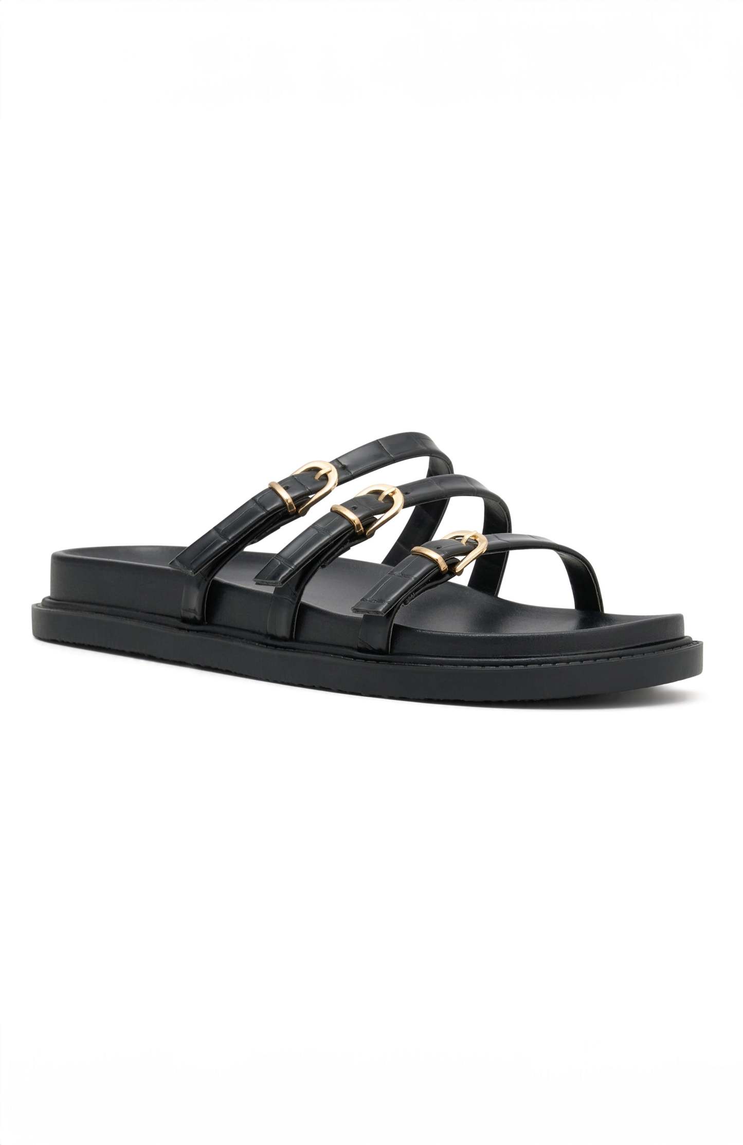 The Ariela Sandals Black Croc are giving us all the Euro summer vibes! Features an easy slip on design, open rounded toe, triple strap design with buckle detail and open back. You need these slides to complete any fit!