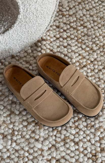 Meet the Cayson Loafer Slides Taupe Faux Suede, your new everyday go-to. Designed with a closed round toe, a sturdy thick sole, and a closed round heel for easy slip-on style. Pair them with everything from denim to a relaxed midi for instant style points.