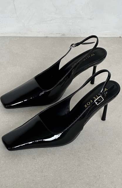 The Ella Heels in Black Patent are the definition of refined elegance. Features square closed toe, open heel and sling back strap for additional support and comfort. These heels pair nicely with denim jeans and a simplistic but striking top.