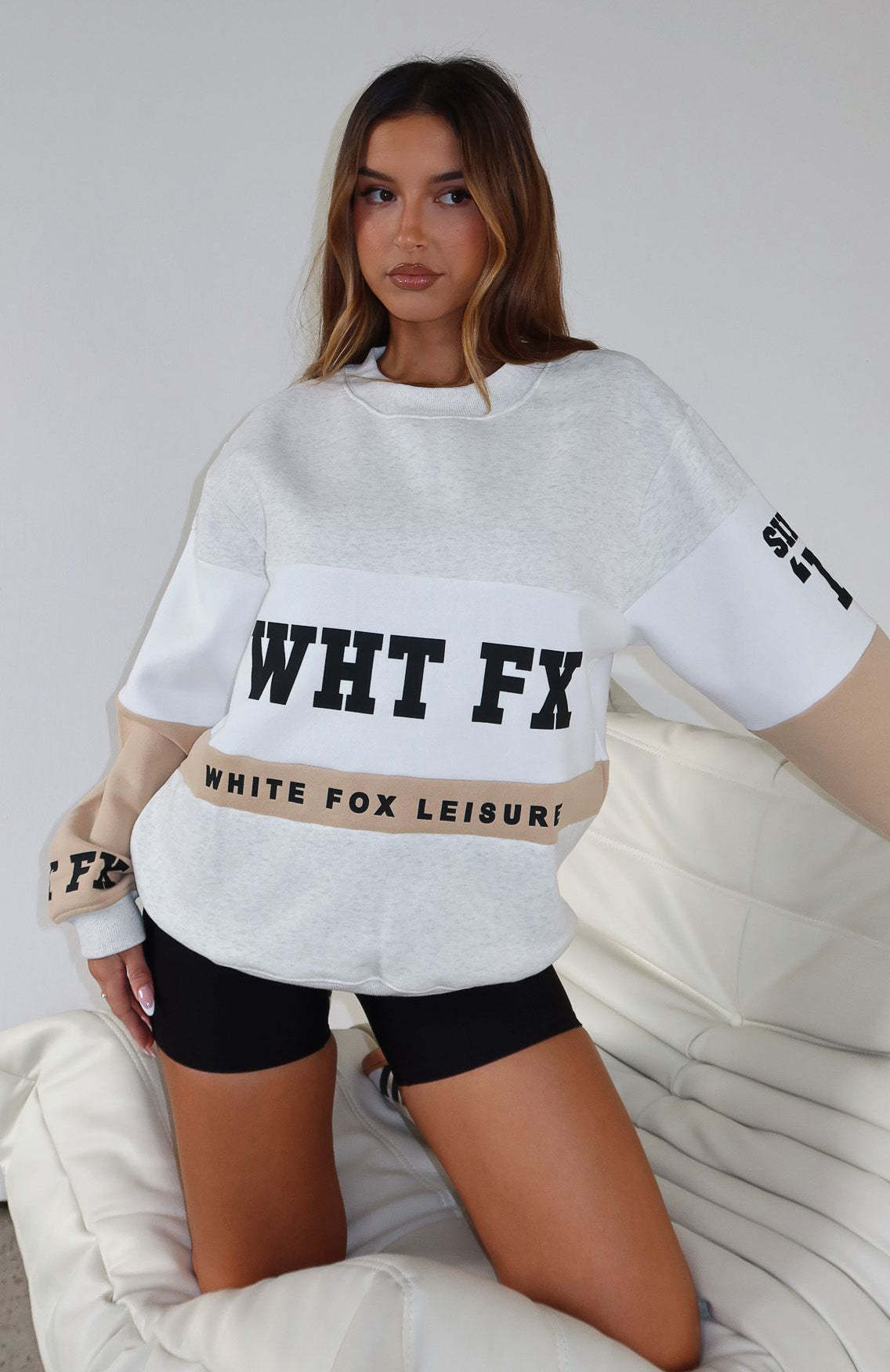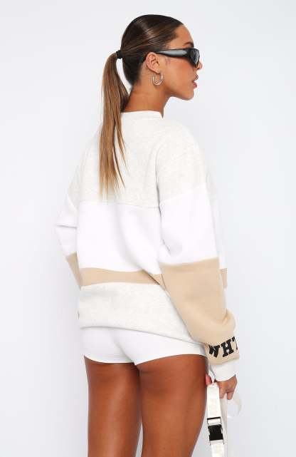 Be comfy and cosy in the Latest And Greatest Oversized Sweater in Neutral. This oversized sweatshirt has a high scooped neckline, ribbed neckline, cuffs and hem, printed logo centre front and super soft fleece lining for extra comfort. Pair with bike shorts and sneakers for the perfect off-duty look!