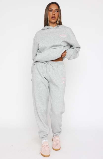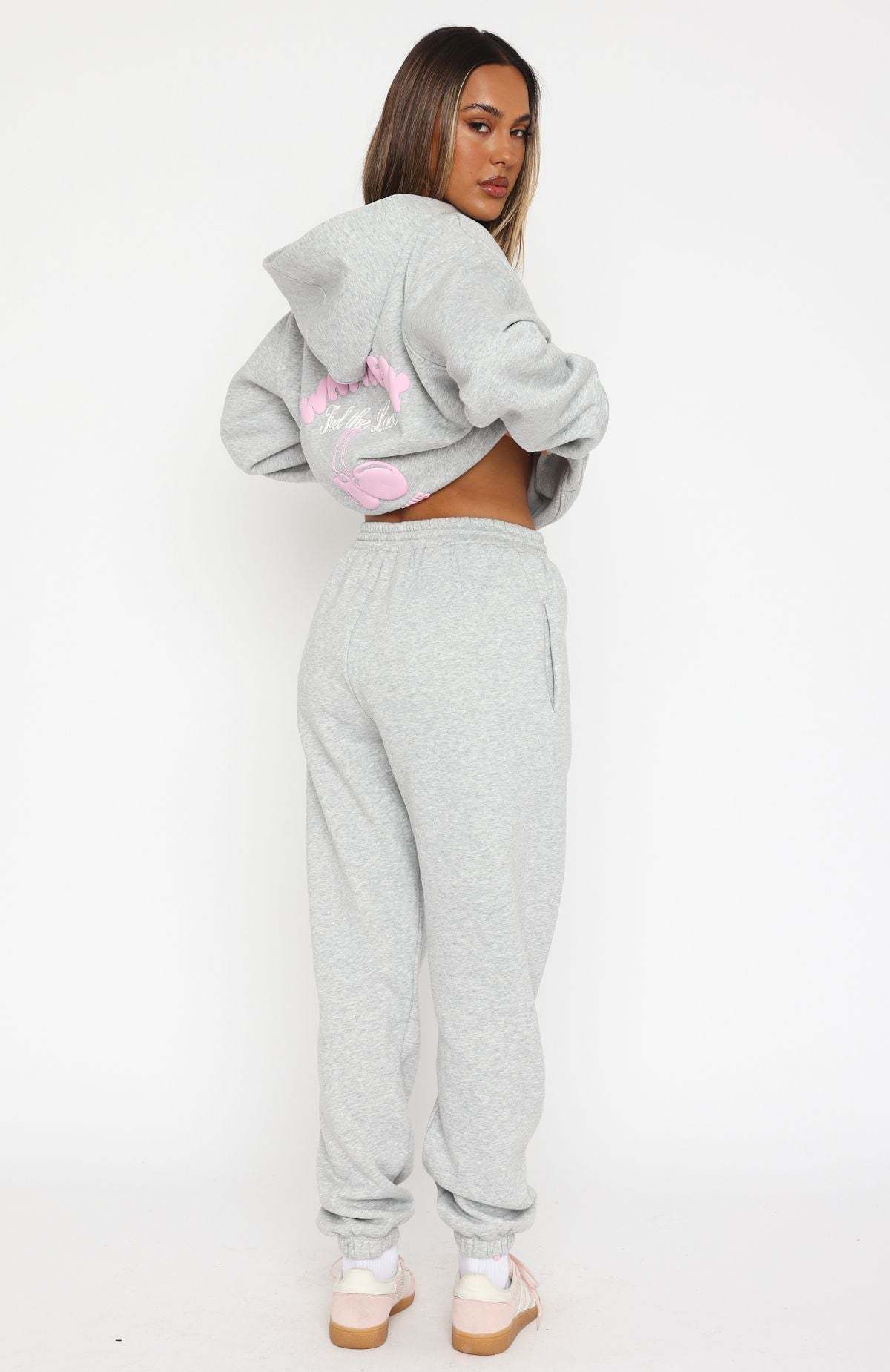 It will be "love" at first wear with our Love Me Tender Sweatpants Dark Grey Marle! Featuring a high elasticated drawstring waistband, elasticated ankles, side pockets, soft fleece fabric for extra comfort and puff print logo on side of leg. Style with the Love Me Tender Oversized Hoodie Dark Grey Marle for a chic matching moment!