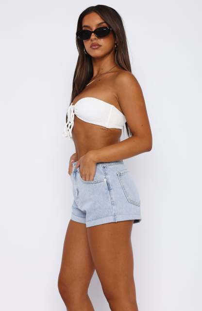 The Missin' Something Denim Shorts in Powder Blue Wash are a weekend staple! These high waisted denim shorts are high waisted with button closure and zipper, 5 pocket design and belt loops. Complete the look with a cute crop top and slides for the perfect summers day look!