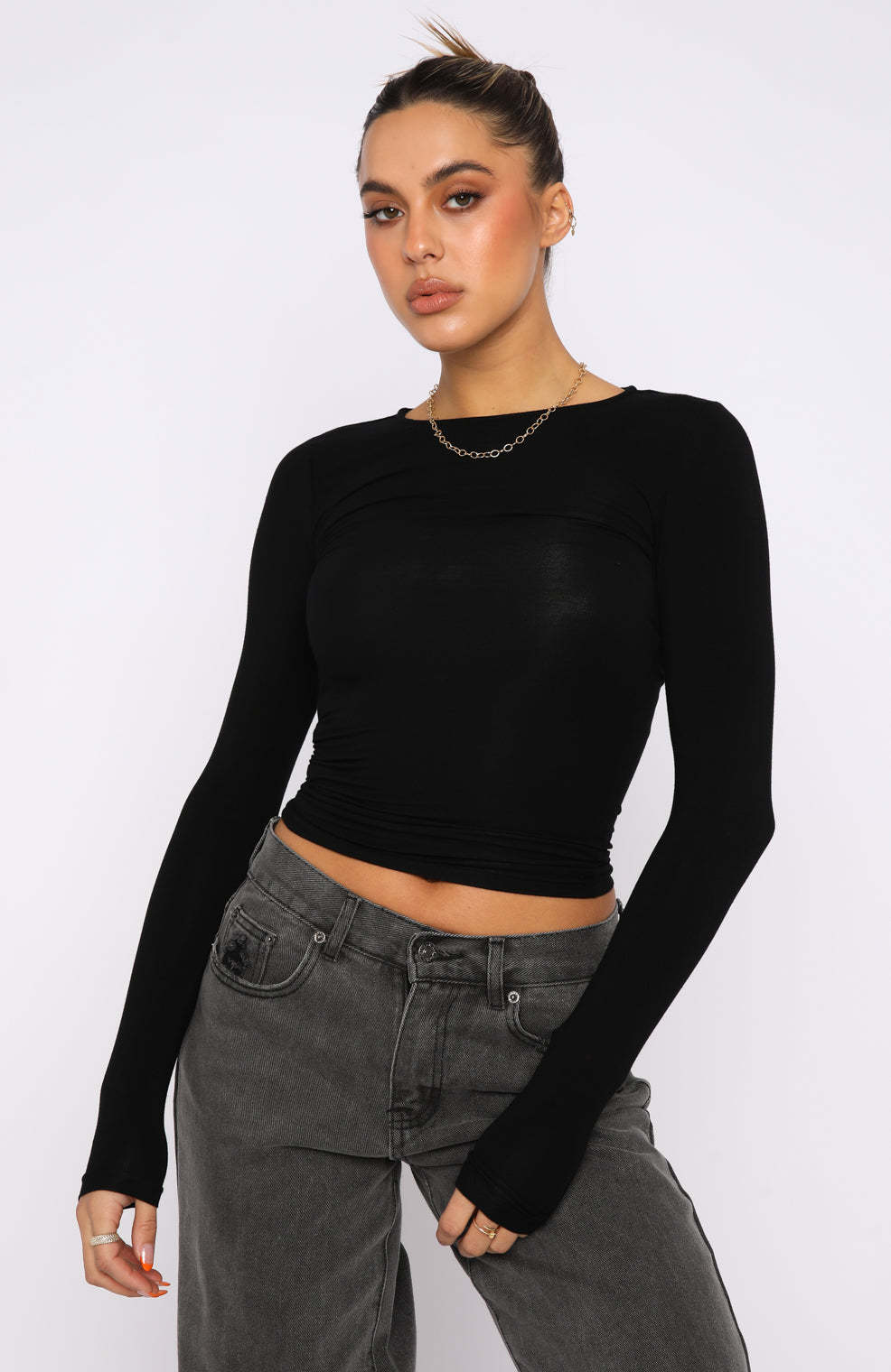 The Only For Tonight Long Sleeve Top in Black is the basic your wardrobe is waiting for. This top is fitted with long sleeves and soft, stretch jersey fabric. Pair with your favourite pair of White Fox Denim Jeans and gold hoops for an elevated everyday look!