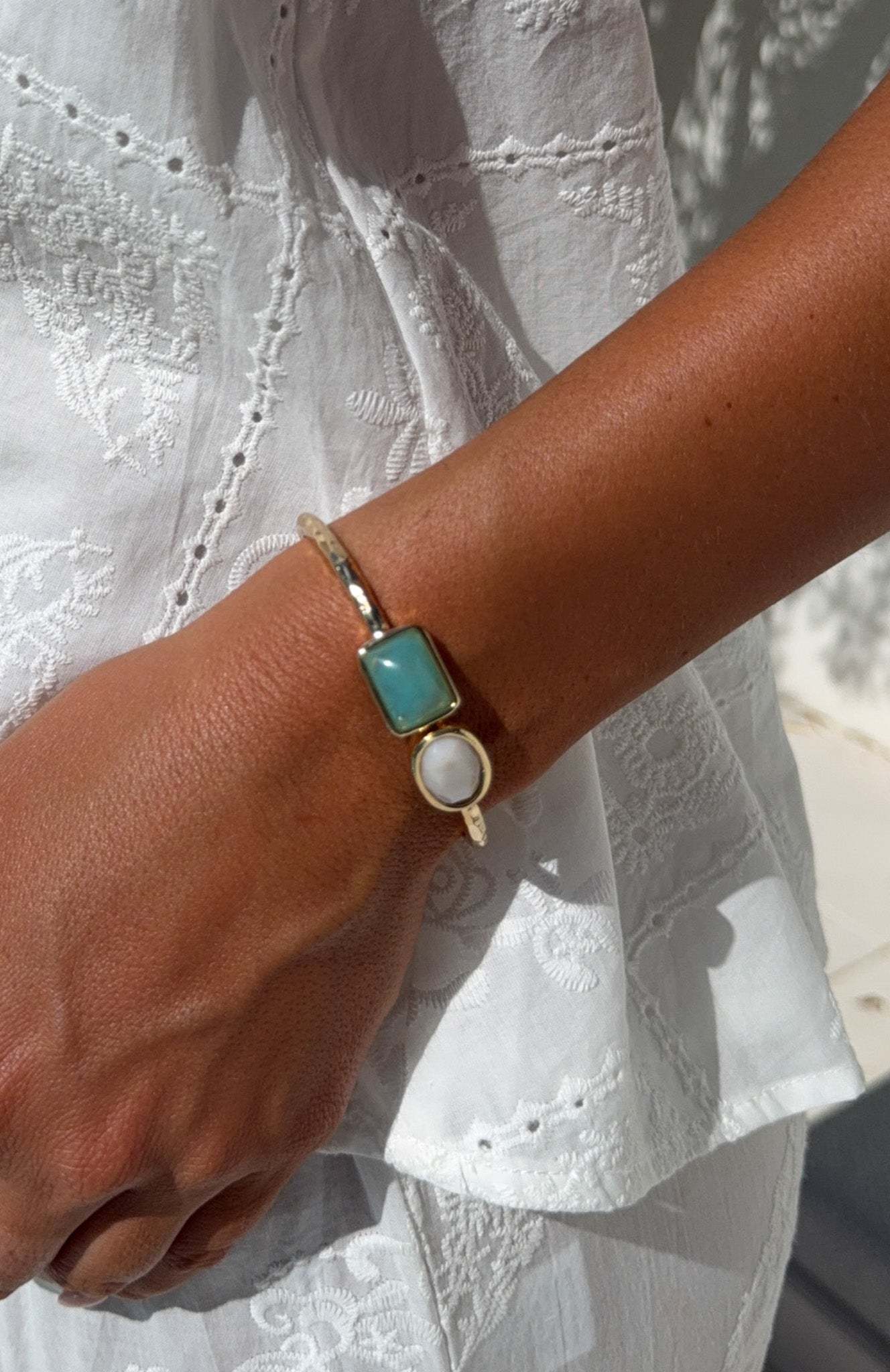 Layer yourself with the Osiris Bracelet in Gold. A statement bracelet with gold‑tone hardware, an easy hinge closure, and an oversized crystal accent. Its bold yet refined design adds instant polish to any outfit.