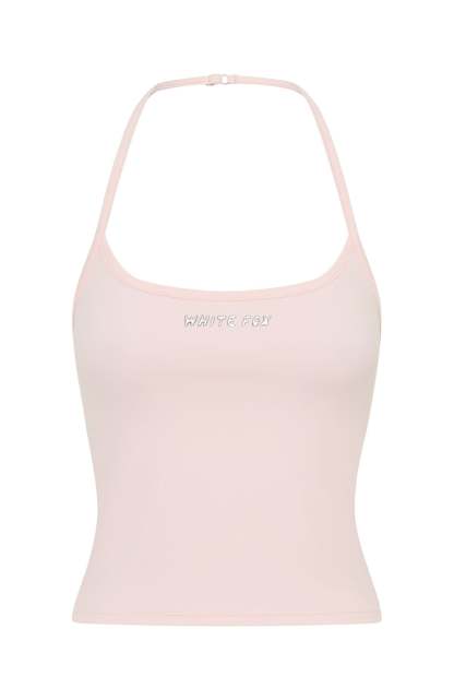 Lounge lovers are obsessed with the Test Drive Halter Top Icy Pink. Designed with fixed adjustable halter straps, a scoop neckline and a fitted bodice crafted in high-stretch fabrication, this sleek piece showcases a puff-print metallic White Fox text across the centre front. Style with the matching Test Drive Lounge Shorts for a cozy yet cool fit.