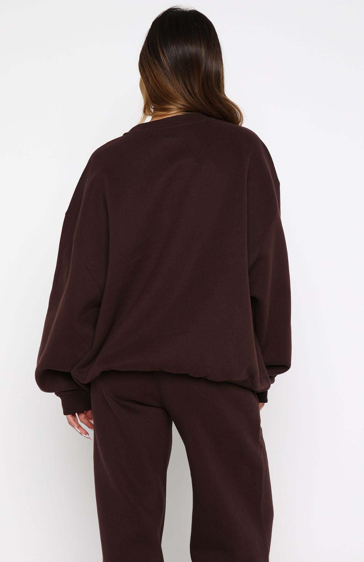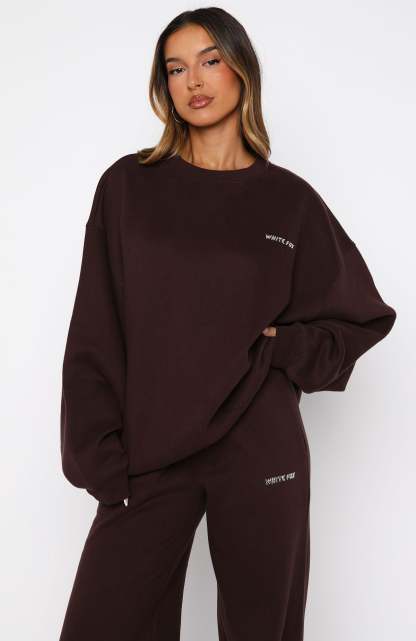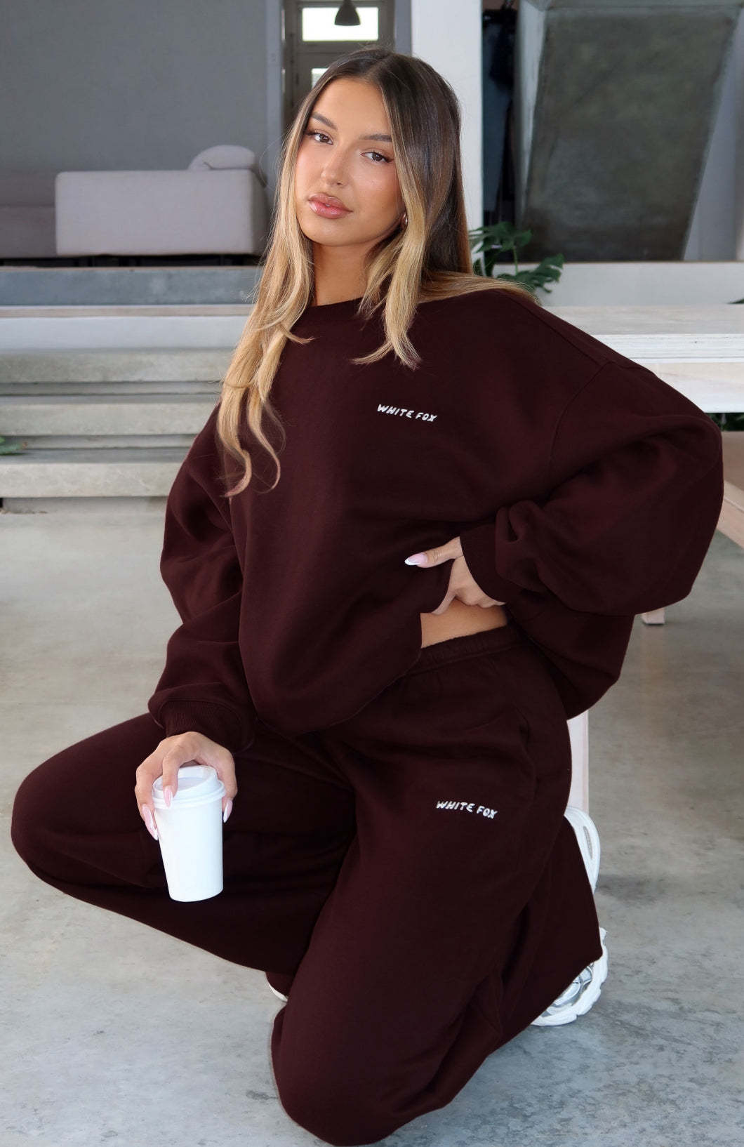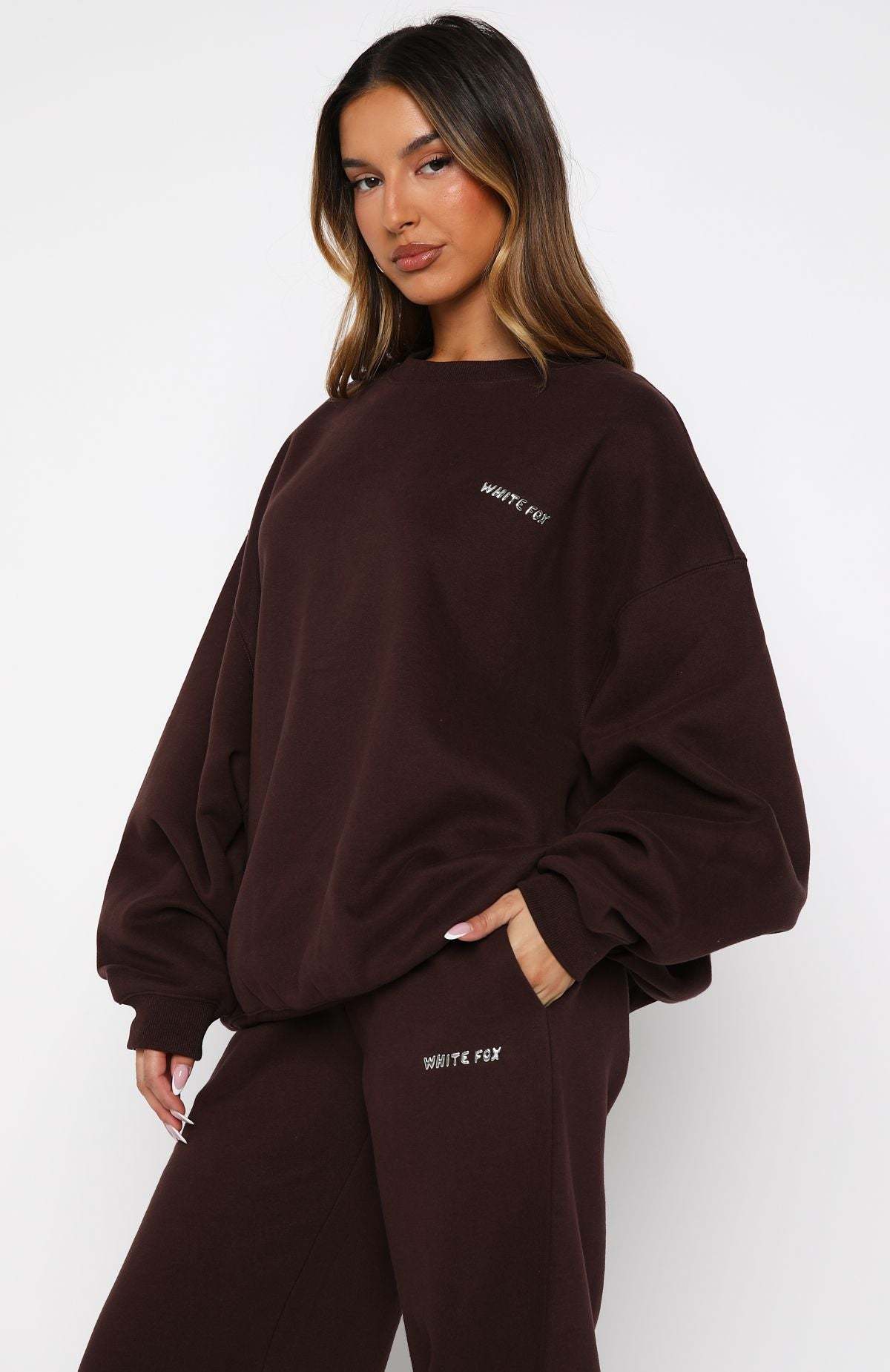 Lounge lovers are obsessed with the Test Drive Oversized Sweater Chocolate! Designed with ribbed crew neckline, and ribbed hems which round out an oversized silhouette. Featuring long sleeves, and an unlined fleece interior, this sweater delivers a cozy feel. Finished with puff print metallic White Fox text side front. Completed the look with the matching Test Drive Lounge Shorts for a cosy yet cool look.